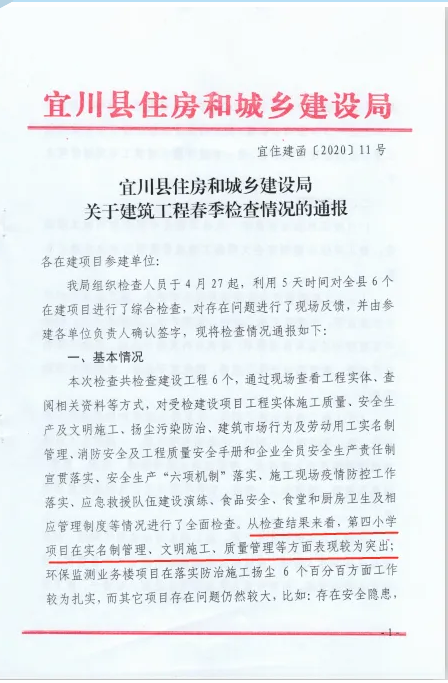 近日,從宜川縣住房和城鄉(xiāng)建設局傳來喜訊,陜建十三建公司承建的宜川縣第四小學項目在全縣在建項目春季綜合檢查中成績優(yōu)異,受到通報表揚。