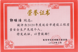 路潔、郭塬浩榮獲“延安市建設(shè)工程質(zhì)量安全生產(chǎn)先進(jìn)個(gè)人”榮譽(yù)稱號(hào)。