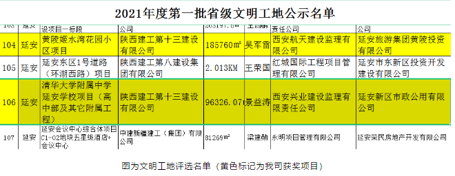 2021年度第一批省級文明工地評選結果