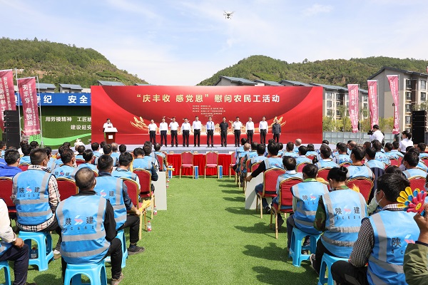 在第四個“中國農(nóng)民豐收節(jié)”到來之際,9月22日,陜西省總工會走進陜建十三建集團延安南泥灣勞模工匠學(xué)院項目,開展“慶豐收、感黨恩”慰問農(nóng)民工活動。