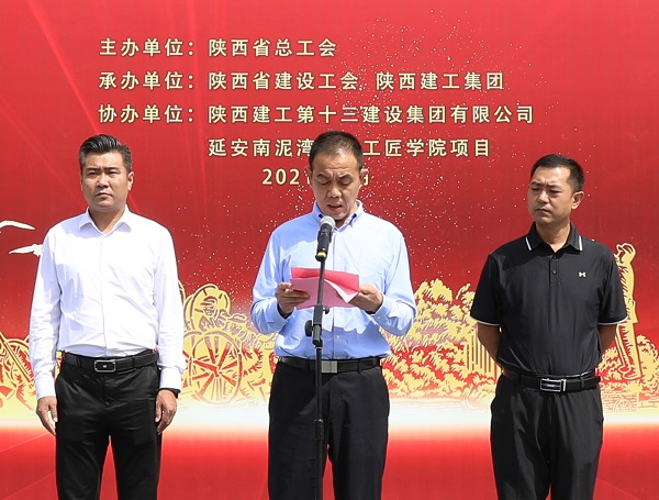 陜西建工集團黨委常委、副總經(jīng)理劉小強在致辭中表示陜建作為我省最大的國企建筑鐵軍,在省委、省政府的領(lǐng)導(dǎo)下,在70余年的發(fā)展長河中,建設(shè)了一大批國防、科教、文衛(wèi)、公共服務(wù)等重點項目,積極服務(wù)于陜西發(fā)展和國家建設(shè),既有深厚的文化積淀,又有雄厚的綜合實力。有幸承建延安南泥灣勞模工匠學(xué)院這個重點項目,我們倍感榮幸,倍加珍惜。我們已將該項目列為十三建集團的“一號工程”,調(diào)集精兵強將,以“出手必須出彩,完成必須完美”的作風(fēng)、“開局就是決戰(zhàn),起步就是沖刺”的魄力,“努力到無能為力,拼搏到感動自己”韌勁,科學(xué)合理、協(xié)調(diào)高效的管理模式,將項目建設(shè)成為優(yōu)質(zhì)結(jié)構(gòu)工程、綠色施工示范工程,爭創(chuàng)魯班獎,為省總工會交上一份滿意的“答卷”。