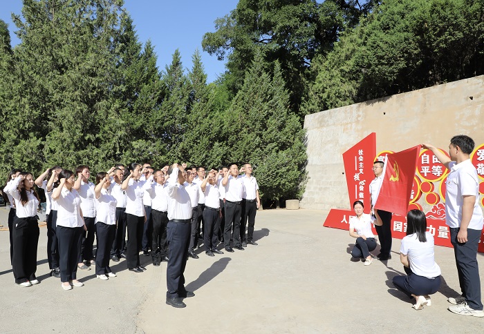 在楊家?guī)X革命舊址,集團(tuán)黨委書記、董事長卜國平帶領(lǐng)全體黨員,面對(duì)黨旗高舉右手,齊肩握拳,再次莊嚴(yán)宣誓。“我志愿加入中國共產(chǎn)黨……隨時(shí)準(zhǔn)備為黨和人民犧牲一切,永不叛黨。”鏗鏘恢宏的誓詞,聲聲震耳,強(qiáng)烈震撼著在場(chǎng)的每一位黨員,一字一句,神圣而豪邁,充分體現(xiàn)了黨員同志們對(duì)中國共產(chǎn)黨的無限忠誠和熱愛。隨后,在講解員的引導(dǎo)下,大家先后參觀中央大禮堂,毛澤東、朱德、周恩來等老一輩無產(chǎn)階級(jí)革命家故居,了解了黨的七大的歷史背景、會(huì)議過程和重要意義,重溫艱苦奮斗、自力更生的延安精神。