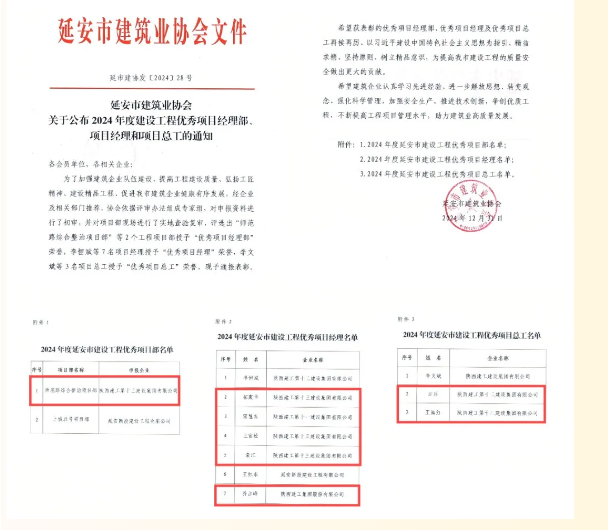 日前,延安市建筑業(yè)協(xié)會(huì)公布了2024年度延安市建筑業(yè)先進(jìn)企業(yè)、優(yōu)秀企業(yè)家、項(xiàng)目經(jīng)理部、項(xiàng)目經(jīng)理、項(xiàng)目總工評(píng)選結(jié)果,陜西建工第十三建設(shè)集團(tuán)有限公司被評(píng)為2024年度延安市建筑業(yè)先進(jìn)企業(yè);集團(tuán)黨委副書記、總經(jīng)理?xiàng)钣篮晖颈辉u(píng)為優(yōu)秀企業(yè)家;師范路綜合整治項(xiàng)目部被評(píng)為建設(shè)工程優(yōu)秀項(xiàng)目部;雷慧東、上官松、拓振華、袁江、喬戰(zhàn)峰五名同志被評(píng)為優(yōu)秀項(xiàng)目經(jīng)理;汪洋、王海紅兩名同志被評(píng)為優(yōu)秀項(xiàng)目總工。